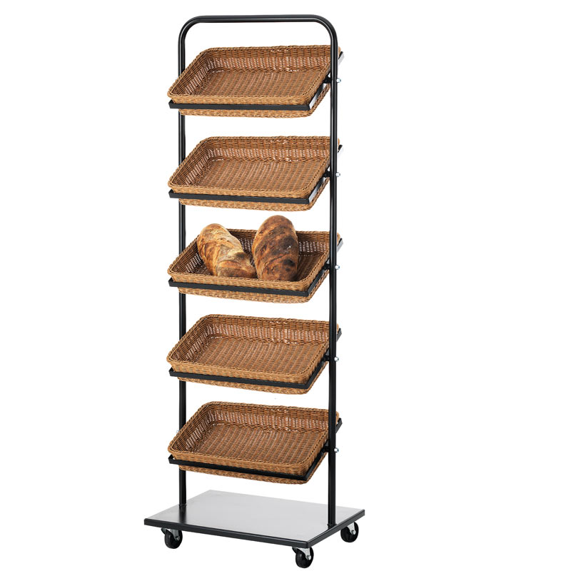 Komplett korgställ på hjul med 5 vinklingsbara korghållare.