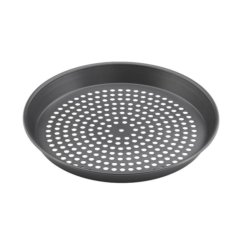 Pizzaform av nonstickbehandlad aluminium med perforering för perfekt bakade pizzor.