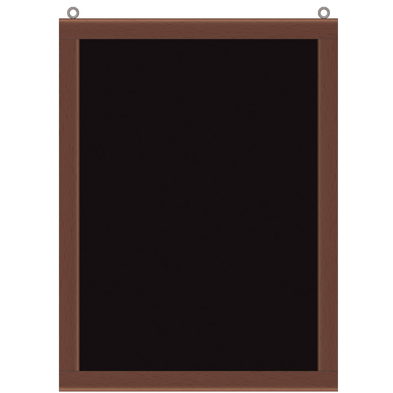 Ram av brunbetsad bok med griffel.